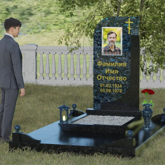 Кому подойдет: Данная модель является универсальной и гармонично впишется в мемориальный комплекс как для мужчины, так и для женщины. Асимметричная форма с плавным изгибом придает памятнику определенную легкость, что часто выбирают для оформления захоронений матерей или жен. В то же время строгая вертикальная колонна и золоченая символика делают его подходящим для увековечивания памяти отца, брата или главы семейства. Это выбор тех, кто ценит эстетику минимализма, надежность натуральных материалов и хочет подчеркнуть преемственность поколений и крепость семейных уз.