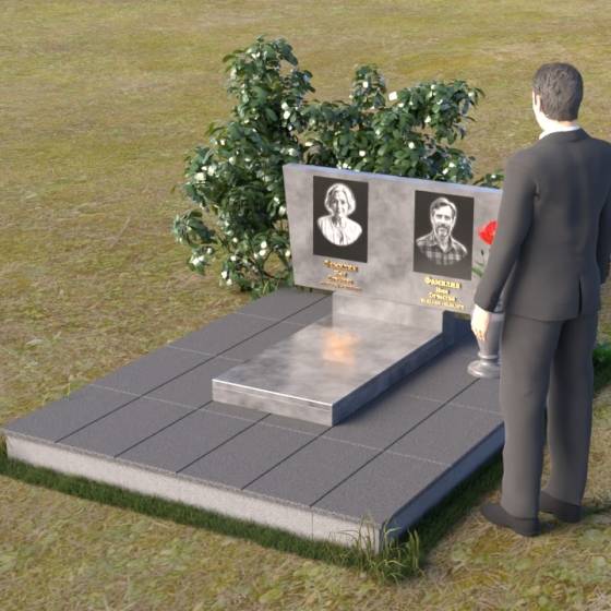 Асимметричная форма стелы не случайна. Она символизирует жизненный путь, который не всегда бывает прямым и предсказуемым. Скошенный угол, напоминающий крыло, несет в себе идею защиты и утешения, а также веру в загробную жизнь. Зеркальная полировка, в свою очередь, отражает свет и символизирует чистоту души и вечную память. Горизонтальная плита, расположенная под стелой, олицетворяет землю, на которой покоится прах усопших, и одновременно служит связующим звеном между земным и небесным мирами. Общий вид памятника создает ощущение покоя и умиротворения, приглашая к тихой молитве и воспоминаниям.
