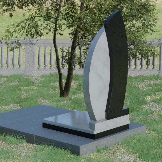 Геометрия модели выстроена на сочетании двух различных пород камня, что позволяет добиться уникальной глубины восприятия. Мы предлагаем этот проект в 8 цветовых вариациях, используя лучшие сорта природного материала: величественный гранит амфиболит, изысканный Балтик грин, мерцающий Блю Перл, классический Габбро-диабаз, насыщенный Дымовский, яркий Лезниковский, светлый Мансуровский или белоснежный мрамор Тассо. Такое разнообразие палитры — это не просто эстетический выбор, а возможность отразить уникальный характер и темперамент покойного, подобрав камень, который будет резонировать с его жизненным путем.