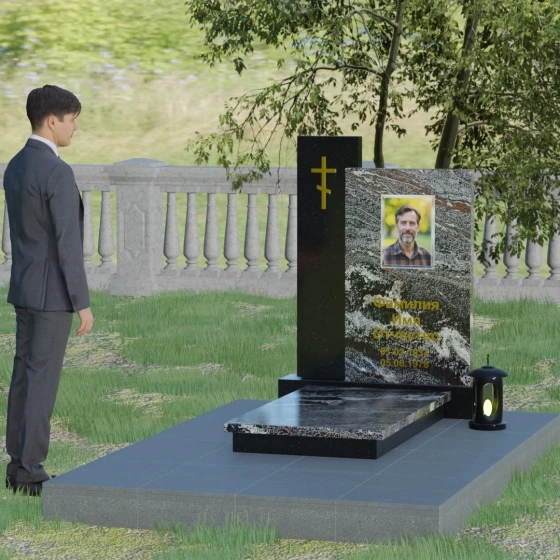 Кому подойдет: Благодаря своей строгой геометрии и асимметричному дизайну, этот памятник является универсальным и благородным решением. Лаконичность форм и отсутствие излишнего декора делают его идеальным для оформления мужского захоронения (отцу, мужу или брату), подчеркивая твердость и достоинство. В то же время, при использовании цветного гранита или светлого мрамора, модель прекрасно подойдет для женского или семейного мемориала. Это выбор тех, кто ищет баланс между традиционными символами веры и современной европейской архитектурой в ритуальном искусстве.