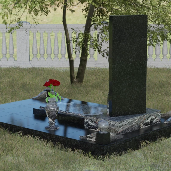 Кому подойдет: Данная модель является универсальной, однако за счет центрального символа — сердца — чаще всего выбирается для оформления женских захоронений. Она станет достойным выражением любви и вечной памяти для матери, супруги, дочери или сестры. Сложная геометрия и наличие декоративных элементов (вазы, шаров) делают это ритуальное изделие идеальным выбором для тех, кто ищет современный, эстетически насыщенный мемориал, сочетающий в себе европейский стиль и традиционную прочность натурального камня.
