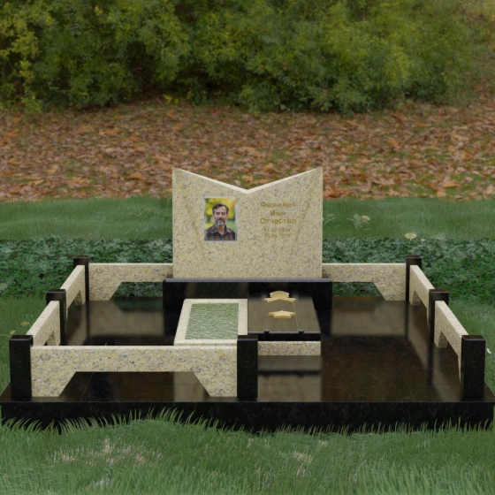 Кому подойдет: Данный мемориальный комплекс разработан для тех, кто хочет подчеркнуть особые заслуги и статус близкого человека. Строгая геометрия, наличие рельефных звезд на плите и форма «раскрытой книги» делают это надгробие идеальным выбором для оформления захоронения военного, ветерана, государственного служащего или человека, чей жизненный путь был примером стойкости и мудрости. Это выбор тех, кто ценит надежность, эстетическую завершенность и безукоризненное качество исполнения, которое останется неизменным для многих поколений.
