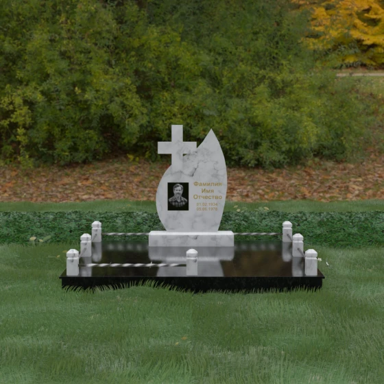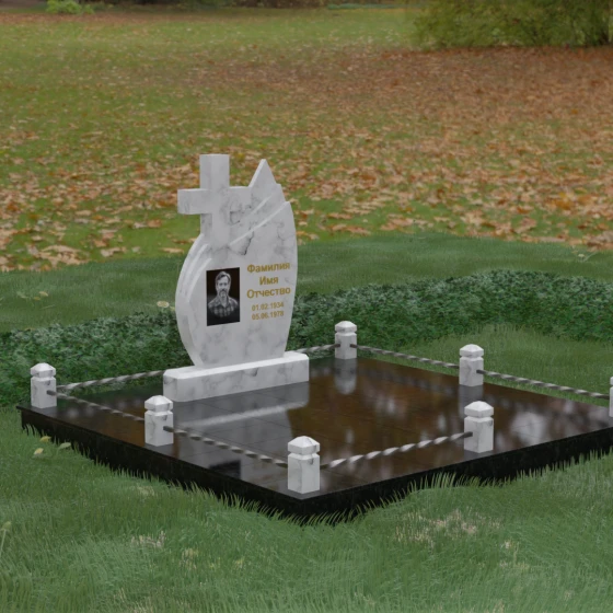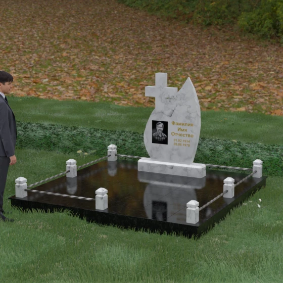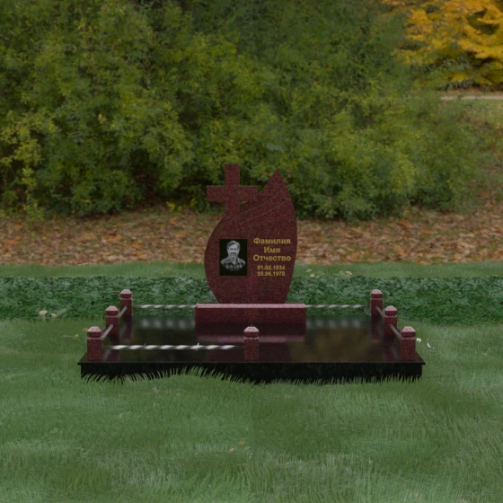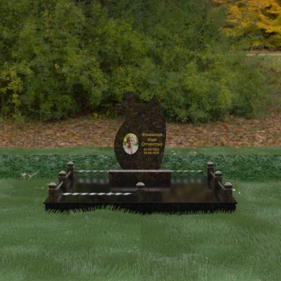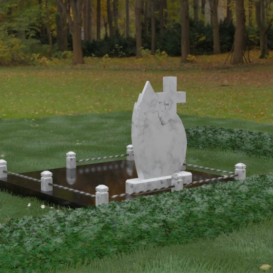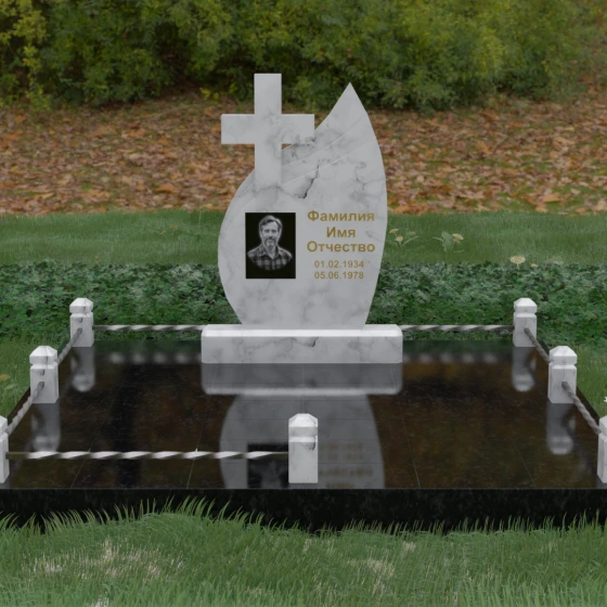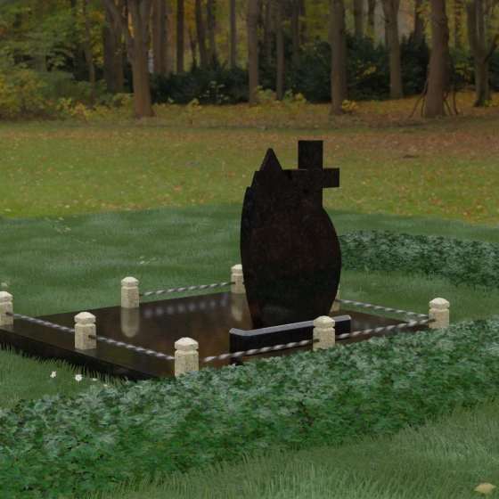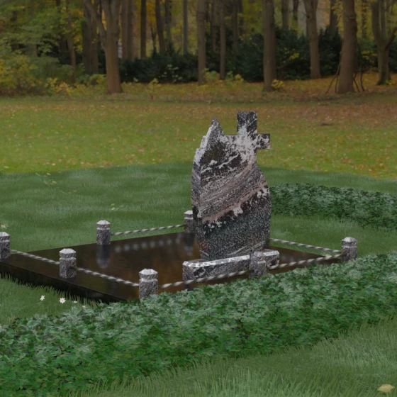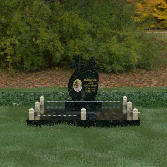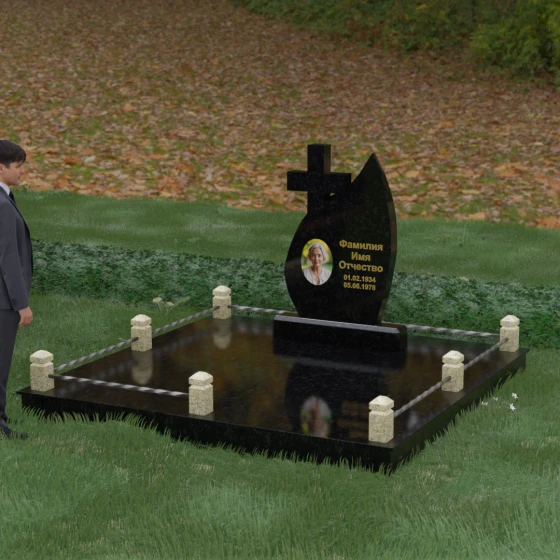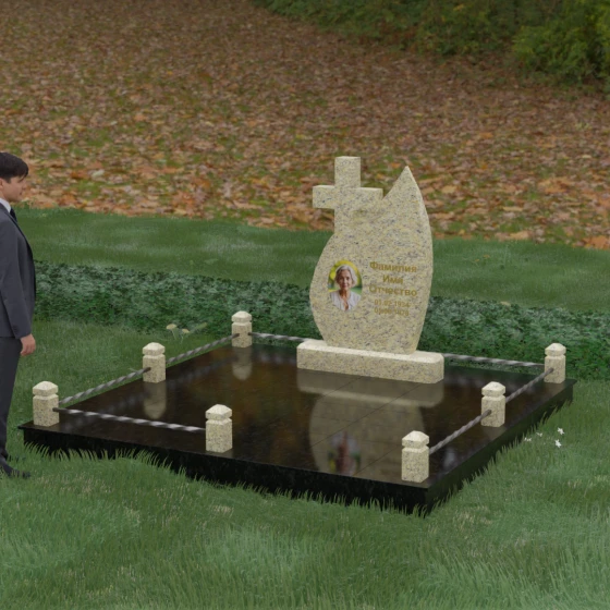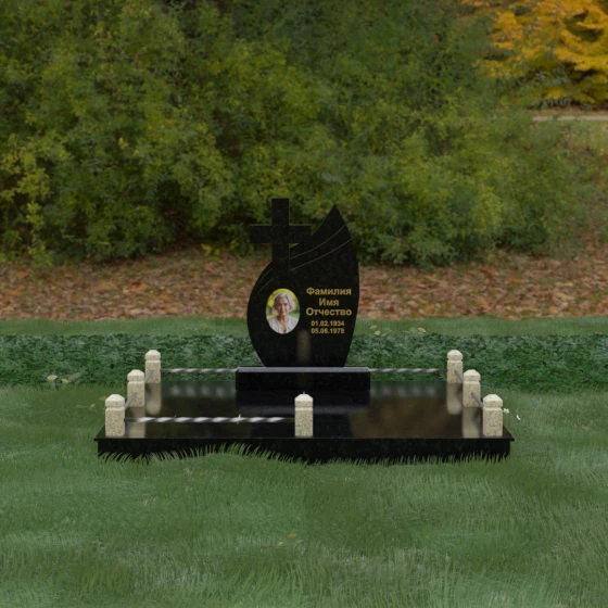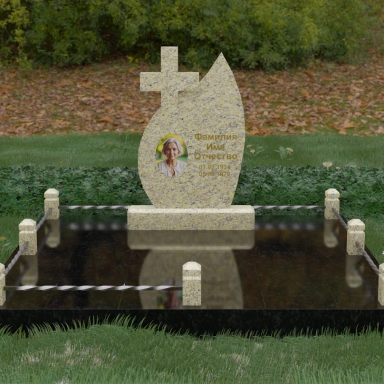 Кому подойдет данная модель: Благодаря сочетанию строгого креста и мягких, женственных линий стелы, этот вариант является универсальным и глубоко символичным. Он станет достойным выбором для оформления места памяти матери, жены, сестры или дочери — женщины, чья жизнь была наполнена любовью и добротой. Плавные изгибы камня подчеркивают нежность образа, в то время как общая монументальность конструкции говорит о вечной памяти и невосполнимости утраты. Этот комплекс выбирают те, кто ценит эстетику модерна, чистоту линий и хочет обеспечить безукоризненный вид участка на долгие годы без лишних хлопот.