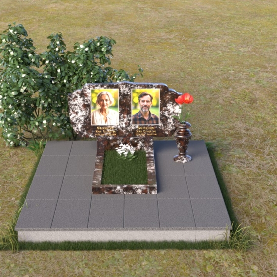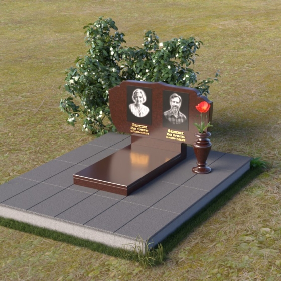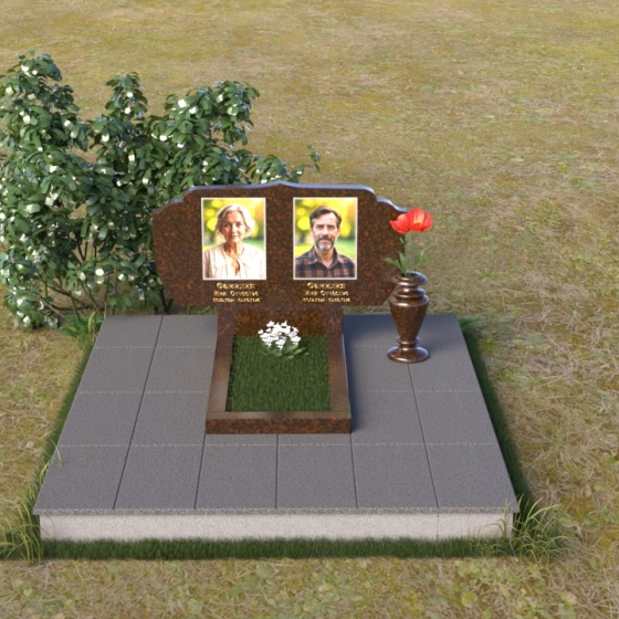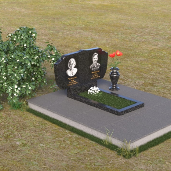 Этот гранитный монумент – достойный способ почтить память близких. Его строгая элегантность и лаконичность линий создают ощущение покоя и умиротворения. Верхняя часть памятника имеет фигурную форму с плавными изгибами, напоминающими о мягкости и нежности воспоминаний. Полированная до зеркального блеска поверхность контрастирует с выгравированными портретами, создавая эффект глубины и объема. Этот контраст подчеркивает важность запечатленных лиц, словно вынося их из тени времени на свет вечной памяти.