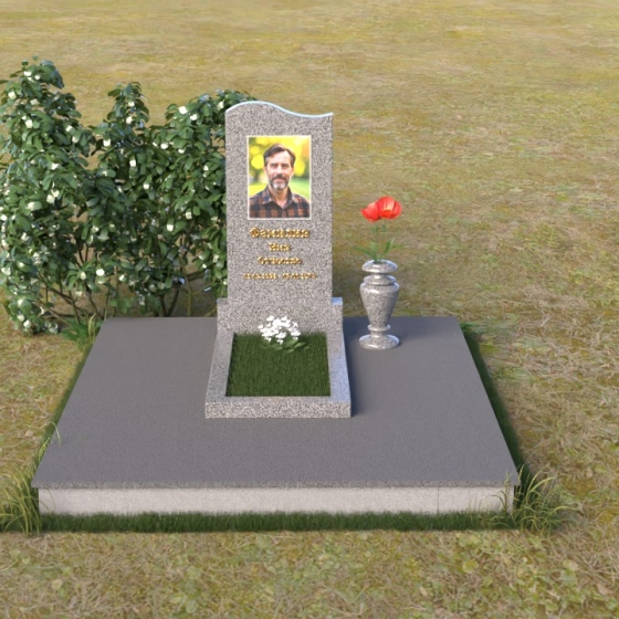 Форма арки, выбранная для стелы, символизирует переход из земной жизни в вечность. Она словно врата, открывающиеся в иной мир, полный покоя и света. Закругленные грани стелы говорят о мягкости и доброте ушедшего человека, о его способности сострадать и любить. Зеркальная полировка подставки отражает надежду на светлое будущее и веру в бессмертие души. В целом, мемориальная композиция излучает чувство защищенности и умиротворения, создавая атмосферу тихой скорби и светлой памяти.