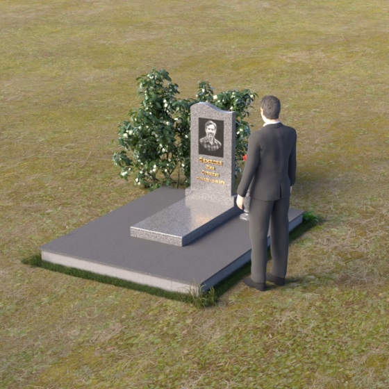 Мемориальная композиция ПВ 010 представляет собой тщательно продуманное архитектурное решение, где каждый элемент несет свою смысловую нагрузку. Стела выполнена в форме строгой, но элегантной арки, с плавным, закругленным верхом, словно стремящимся ввысь. Боковые грани стелы аккуратно скруглены, смягчая строгость формы и придавая ей ощущение спокойствия и завершенности. На лицевой стороне выгравирован портрет усопшего, выполненный с высоким уровнем детализации, а ниже – надпись с именем и датами жизни. Отдельно стоит отметить подставку под стелу. Она имеет прямоугольную форму с зеркальной полировкой, которая отражает небо и окружающий пейзаж, создавая ощущение легкости и воздушности. Скошенные фаски по периметру подставки добавляют ей изысканности и подчеркивают четкость линий.