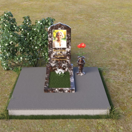 Форма этого гранитного монумента идеально подходит для размещения портрета усопшего. Благодаря своей вытянутой форме, он позволяет создать гармоничную композицию, где портрет будет занимать центральное место и привлекать к себе внимание. Золотое начертание имени и дат жизни на фоне темного полированного гранита выглядит особенно торжественно и выразительно. Вы можете выбрать любой из восьми доступных вариантов камня, чтобы подчеркнуть индивидуальность образа и создать памятник, который будет полностью соответствовать вашим представлениям о красоте и гармонии. Гранит амфиболит с его неповторимыми разводами, Балтик грин с его мягким зеленым оттенком, Блю Перл с его искрящимися вкраплениями, Габбро-диабаз с его глубоким черным цветом, Дымовский с его теплым коричневым оттенком, Лезниковский с его насыщенным красным цветом, Мансуровский с его светлым и благородным видом, или же классический мрамор Тассос – каждый из этих камней обладает своим уникальным характером и способен передать всю глубину ваших чувств. Подберите камень, который лучше всего отражает характер человека, которому посвящен этот гранитный монумент.