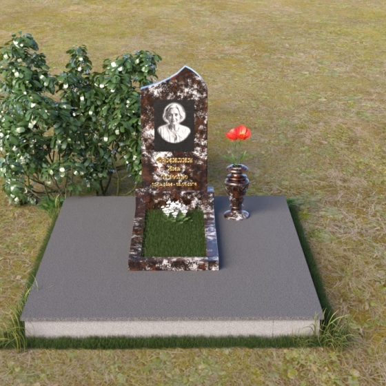 Оформление: Для данной формы памятника рекомендуется гравировка портрета в верхней части стелы, над ФИО и датами жизни. Золотое или серебряное напыление букв придаст надписи особую выразительность и благородство. Расположение текста должно быть лаконичным и сбалансированным, чтобы не перегружать композицию. Можно добавить небольшие символические элементы, такие как крест или ветвь, чтобы подчеркнуть религиозную принадлежность или особые черты личности усопшего.