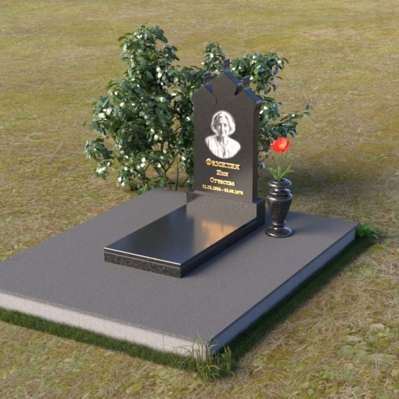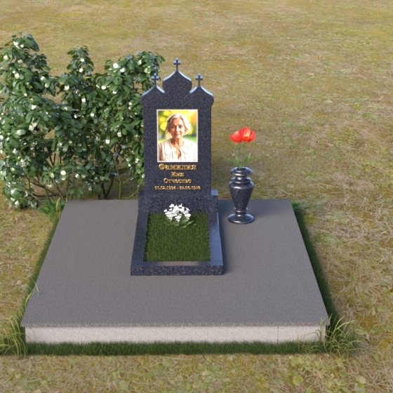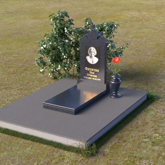 Форма надгробного сооружения представляет собой классический прямоугольник, увенчанный декоративным элементом в верхней части. Этот элемент, напоминающий силуэт православного храма, придает монументу особую духовность и возвышенность. Прямые линии и четкие грани символизируют стабильность и уверенность, а мягкие переходы и закругленные углы добавляют образу теплоты и человечности. Гладкая полированная поверхность отражает свет, создавая ощущение простора и легкости. На таком памятнике портрет усопшего будет выглядеть особенно выразительно и трогательно. Рекомендуем выбирать фотографии, отражающие светлые моменты жизни, наполненные радостью и любовью. Золотое начертание имени и дат жизни на фоне черного гранита создаст элегантный контраст и подчеркнет значимость каждой прожитой минуты.