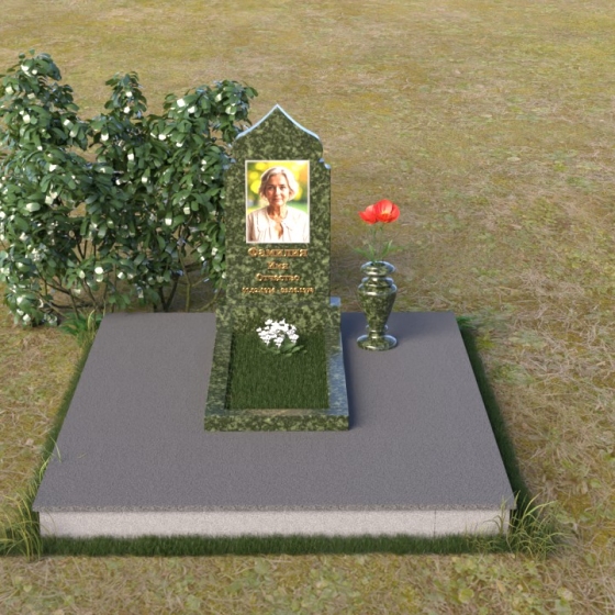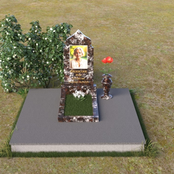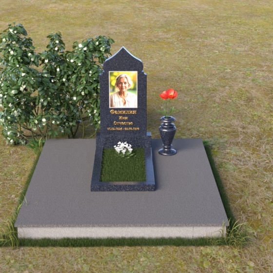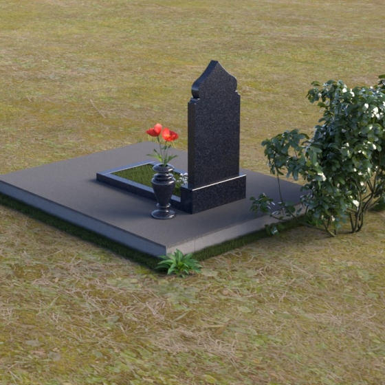 Форма стелы, напоминающая свод, символизирует небесный покров, защиту и покой. Плавные линии и отсутствие острых углов создают ощущение гармонии и умиротворения. Черный цвет гранита, отполированного до зеркального блеска, символизирует вечность и незыблемость памяти. Горизонтальная плита основания – это символ прочности и надежности, олицетворяющий прочную связь с землей. Вертикальная направленность стелы – это стремление к небесам, к духовному миру. Вся композиция в целом выражает идею вечной памяти, покоя и надежды.