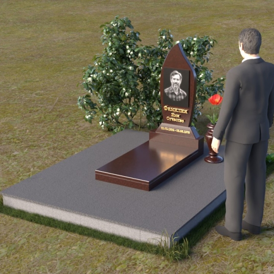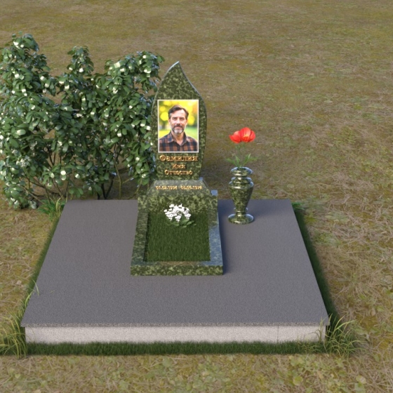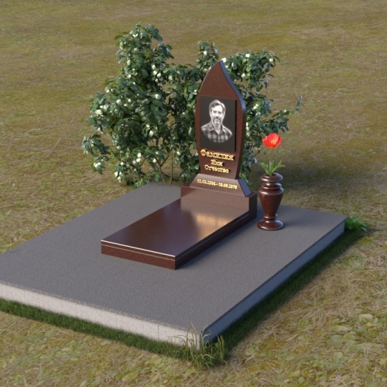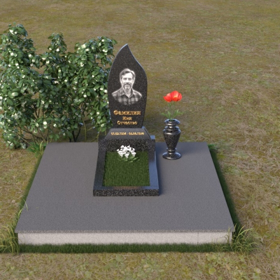 Основание стелы переходит в горизонтальную плиту, также выполненную из полированного гранита. Эта плита служит надежной опорой для стелы и предоставляет дополнительное пространство для возложения цветов и памятных вещей. Рядом с плитой можно установить небольшую вазу, выполненную в том же стиле, для живых цветов, которые добавят красок и жизни в это тихое место.