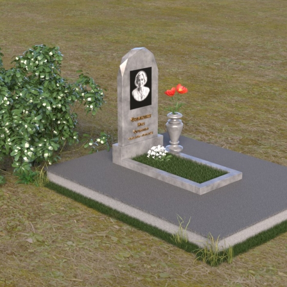 Форма стелы ПВ 069 предоставляет прекрасные возможности для размещения портрета и памятной надписи. Изображение можно расположить в верхней части стелы, где оно будет хорошо освещено и заметно. Золотое тиснение имени и дат жизни на темном фоне гранита создает элегантный контраст и добавляет торжественности. Вертикальное расположение текста гармонично сочетается с формой стелы и позволяет разместить достаточное количество информации, чтобы выразить всю глубину вашей любви и скорби. Рядом со стелой можно установить небольшую вазу для цветов, которая станет символом неувядающей памяти и заботы. Маленькая гранитная плита, расположенная перед стелой, может служить местом для возложения венков или памятных вещей.