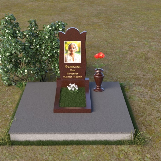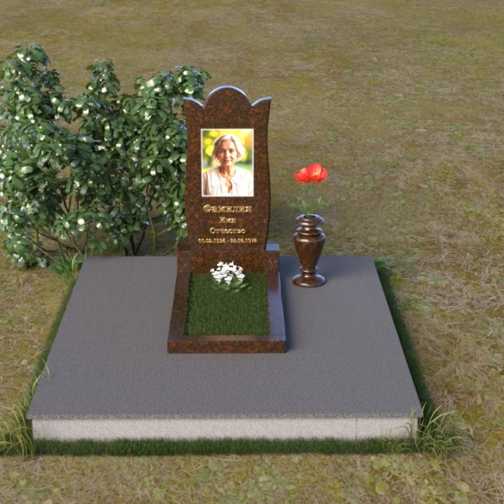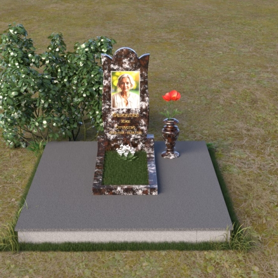 Форма стелы ПВ 070 предоставляет широкие возможности для оформления. Портрет усопшего идеально впишется в верхнюю часть композиции, а золотые буквы имени и дат жизни будут контрастно выделяться на фоне черного гранита, создавая ощущение тепла и света. Расположение портрета в овале или прямоугольнике – выбор за вами, в зависимости от личных предпочтений и стиля фотографии. Зеркальная поверхность камня создаст эффект глубины и объема, делая портрет более выразительным и живым. Дополнительно, у основания стелы можно установить небольшую вазу для цветов, которые станут символом вашей вечной любви и памяти. Небольшая тумба, выполненная в том же стиле и из того же материала, что и стела, завершит общую композицию и придаст ей законченный вид.